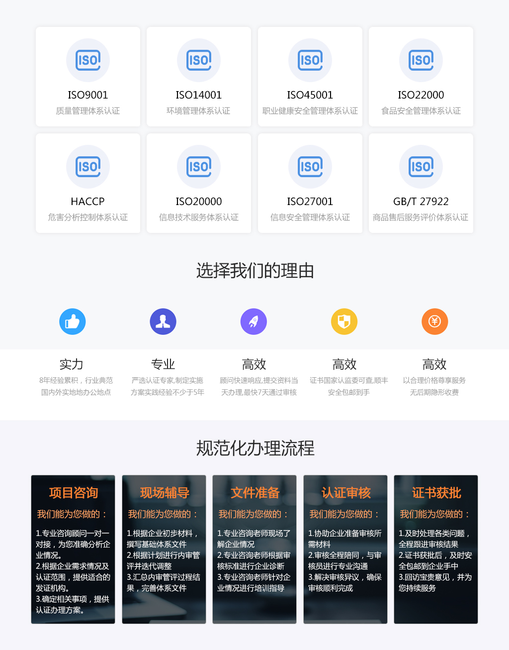 常见的体系认证一般有:ISO/PAS28000:2005供应链安全管理(反恐认证)、ICTI国际玩具业协会商业行为守则、SA8000:2001社会责任管理体系认证、QC08000危险物品进程管理系统要求、ISO/TS16949:2002汽车工业质量管理体系认证、ISO22000:2005与HACCP食品卫生安全管理体系认证、ISO13485:2003医疗器械质量管理体系认证、ISO9001:2008质量管理体系认证、ISO14000:2004环境质量管理体系认证、OHSAS18000:1999职业健康安全管理体系认证、FSC森林体系认证等等。